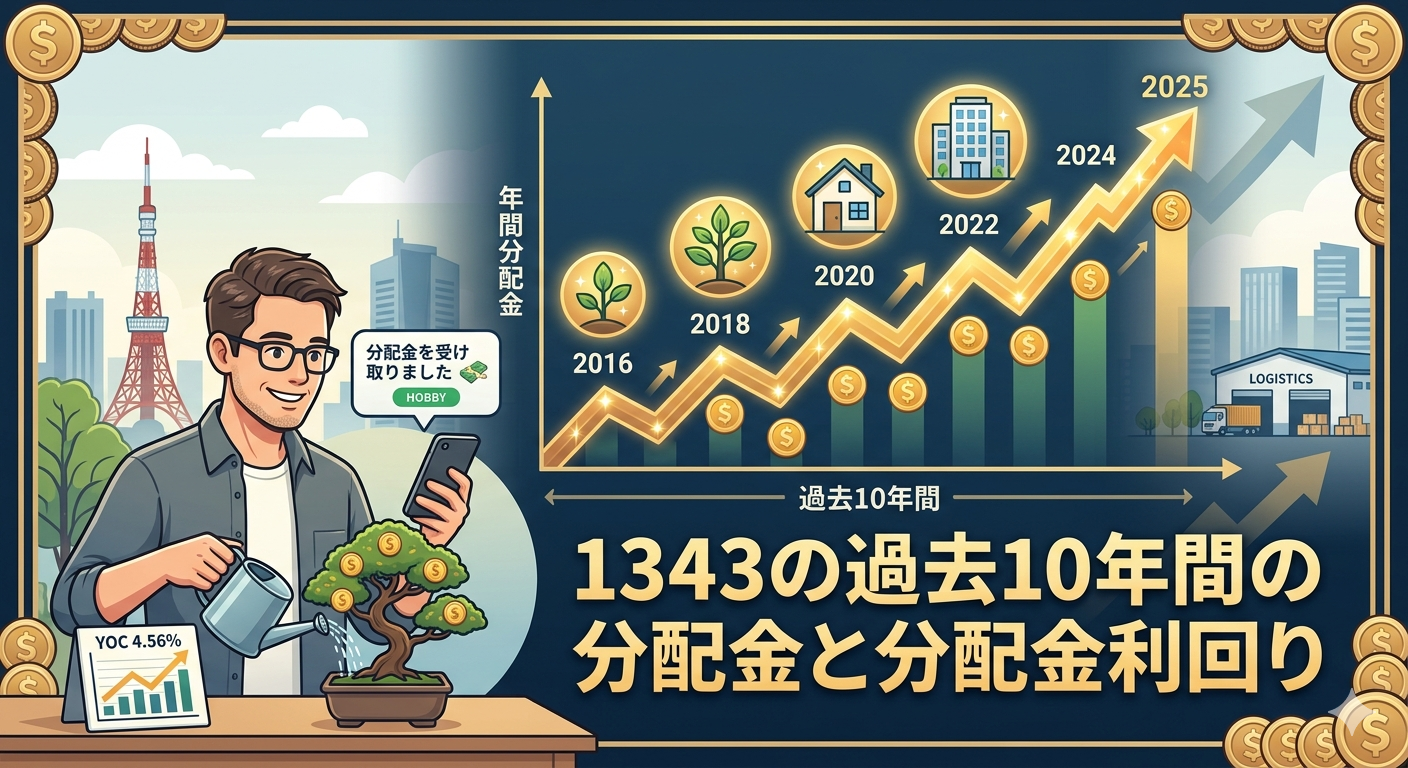 「東証REIT指数(1343)の過去10年間の分配金と分配金利回り」を振り返って見えてきたのは、このETFが持つインカムの安定感です。