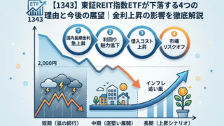 資産運用において「長期・分散・積立」を重視する私のような個人投資家にとって、J-REITはキャッシュフローを生む貴重な高利回り資産の一つです。しかし、最近の東証REIT指数(1343)は高値(2249.5円)から約10%下落しています。特に3月に入ってからは、節目である2,000円に近づいています。なぜ、これほどまでに売られているのか?今回は、現在のREIT市場を下押ししている「4つの要因」から今後の展望についてまとめてみました。