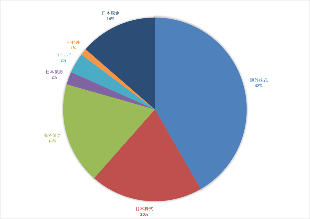 今のところ、目標とする資産配分にはなっていませんが、株資産は少なめになっていると思います。