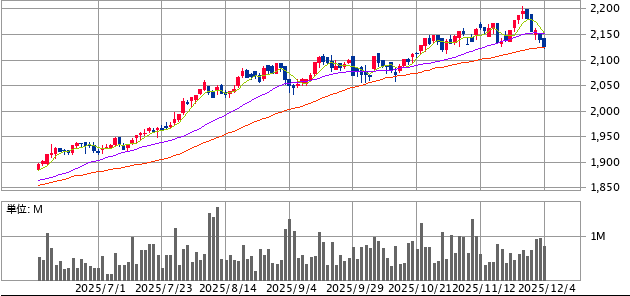 その間も株価は基本的には右肩上がりで、年初来高値を何度も更新してきました。一時期は2,100円が意識されているのかと思っていたのですが、全くそんなことはなく、今年の高値は2,204円まで上昇しています。