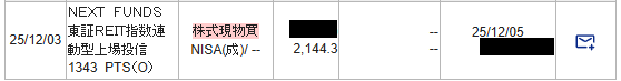 先日、「東証REIT指数(1343)」を購入しました。