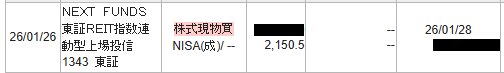 1月の末に、「東証REIT指数(1343)」を購入しました。