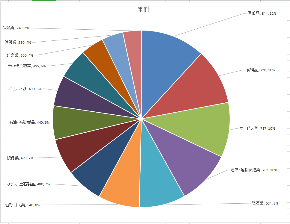 一番最近購入した銘柄を見にくいのですが表にして記します。円グラフはセクター別の配当額の割合になります。2023年の12月に購入しました。この時から比べて現在の株価は15%以上上昇しています。