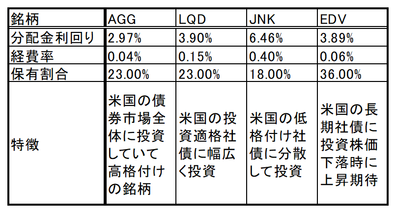 米国債券ETFと一口に言っても様々な債券ETFがあります。その中から私の保有している債券ETFを記します。